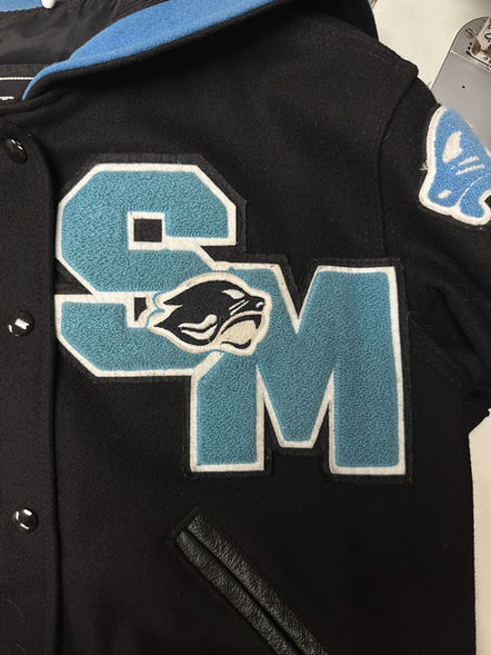 Fluffy, colorful patches seen on letterman jackets. Produced using a vaulted yarn weave to create raised 3D designs with a fluffy texture. Made up of textured chenille yarn, giving them a unique and distinctive appearance. Named after the French word for caterpillar, due to their fuzzy surface finish. Commonly used for varsity letter patches and letterman patches